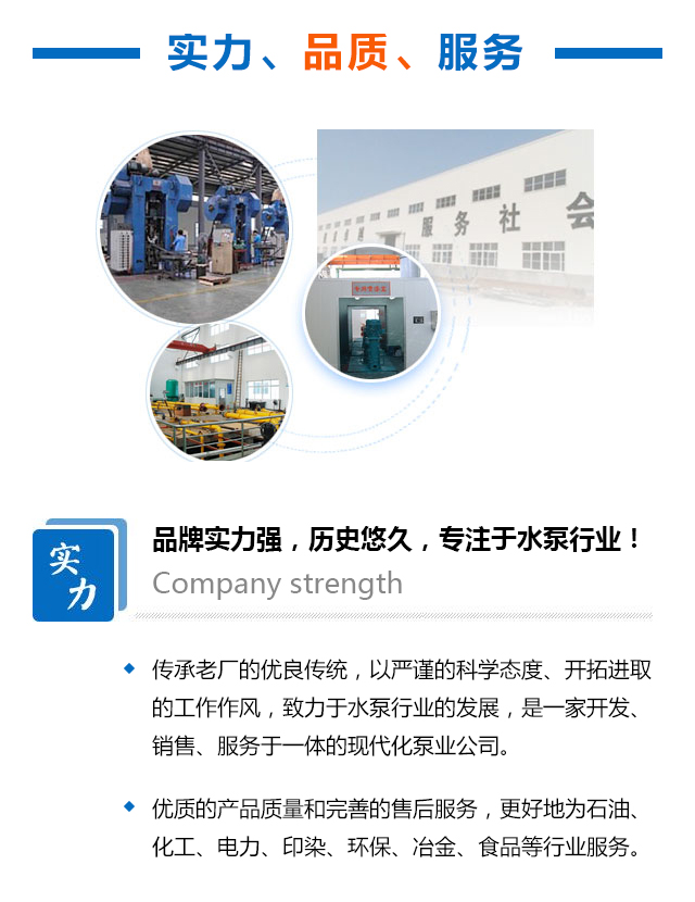 上海一益泵机有限公司是生产各种泵、阀、电机、风机的企业,产品品种繁多,规格齐全, 公司集科研、开发、生产、销售、服务于一体。公司技术力量雄厚,管理方法科学,产品质量稳定可靠,售后服务完善
