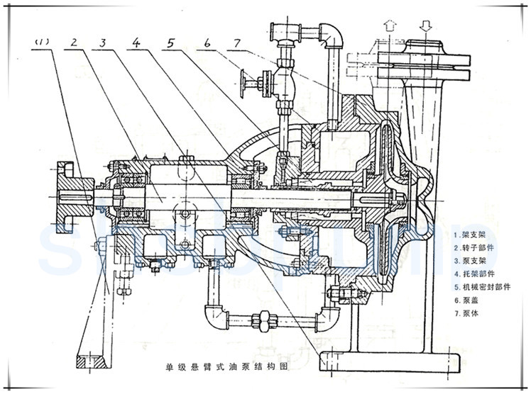 目前生产的Y型系列油泵有四种结构形式:单级悬臂式、两级悬臂式、两级两端支承式、多级节段式。