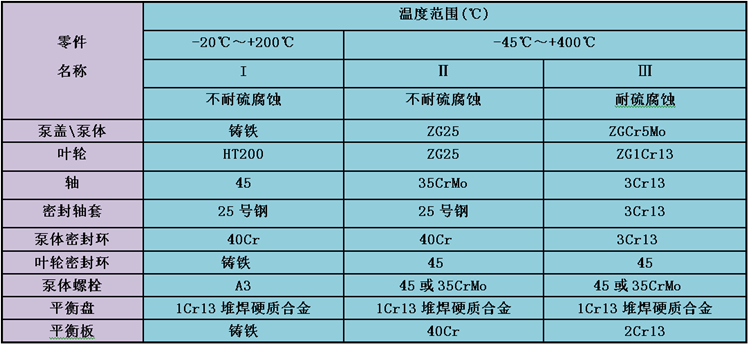 泵一般均配带防爆电机,用加长的弹性联轴器联接;从联轴器端看泵,均为逆时针方向旋转(BY300-150×2和SY500-150×2型转向为顺时针)。泵与介质接触和受温度影响的零件材料。见4.<主要零件材料表>,供用户选用。泵的进出口方向均为垂直向上。