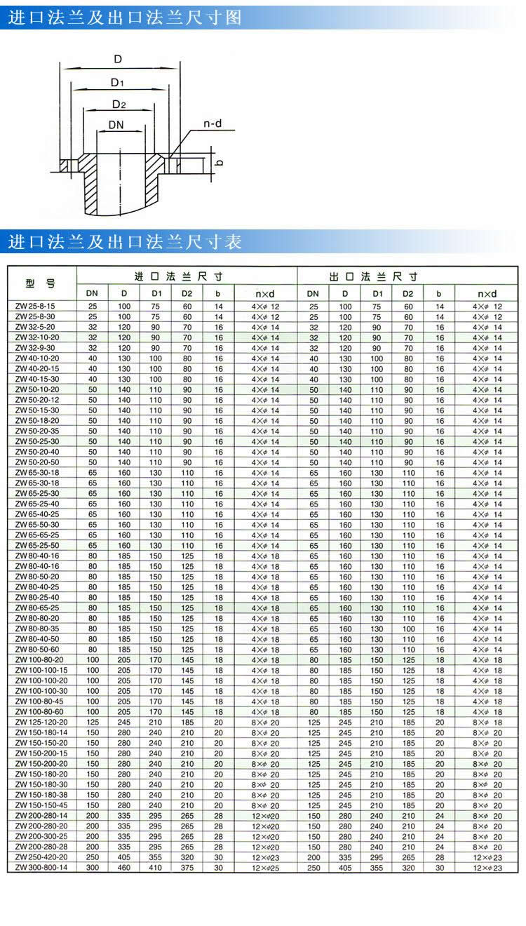 ZW型自吸式无堵塞排污泵(法兰尺寸)