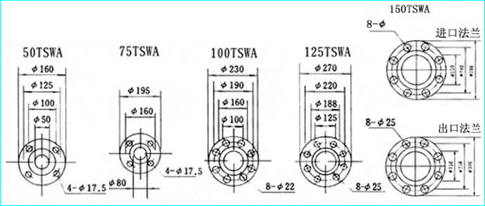 | TSWA型卧式多级离心泵法兰安装尺寸图: |