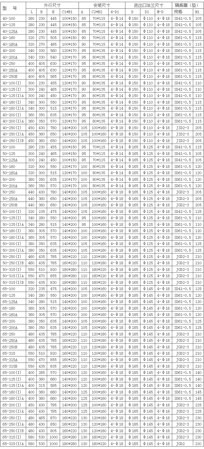 1、泵为立式结构,进出口口径相同,且位于同一中心线上,可象阀门一样安装于管路之中,外形紧凑美观,占地面积小,建筑投入低,如加上防护罩则可置于户外使用。