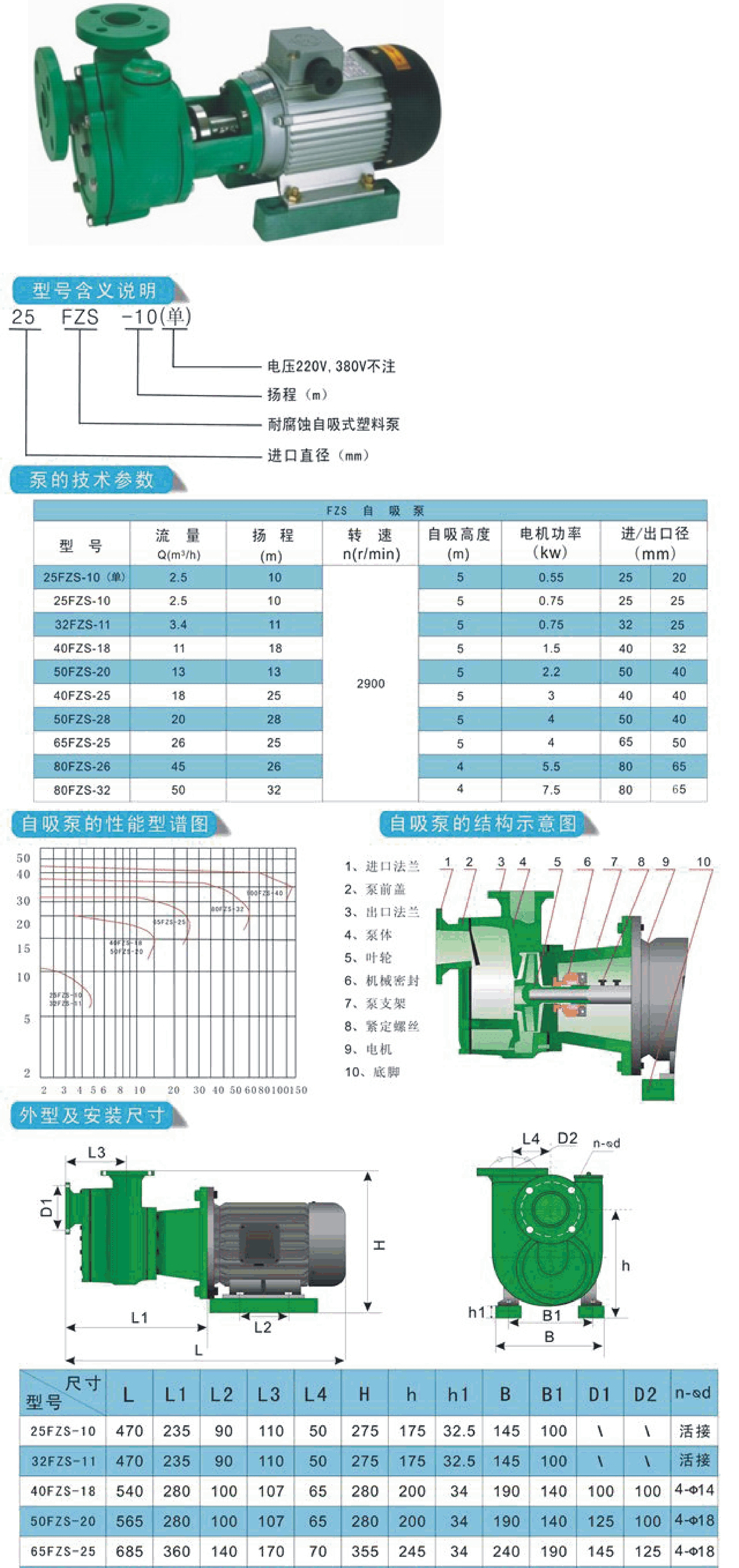 FZS系列泵一次注塑成型、机械强度高,耐腐蚀性能强,结构上有独具一格的科学性。泵腔内设有吸液室、储液室、回液止回阀、气液分离室、回流孔,只需在第一次开机前灌注引液,以后不必重复灌注引液,在吸送介质时,液体可时断时续,断液15分钟内来液可继续吸送,机械密封不需另加冷却水冷却,操作简便,安全,无泄漏,是取代液下泵的最佳产品。