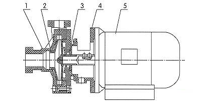 1、泵壳 2、叶轮-轴总成 3、机械密封 4、泵盖 5、电机
