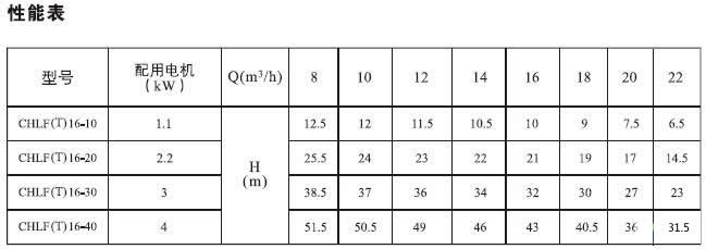 CHLF,CHLF(T)轻型段式多级离心泵(性能参数)