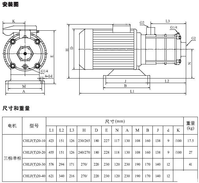 CHLF,CHLF(T)轻型段式多级离心泵(安装尺寸)