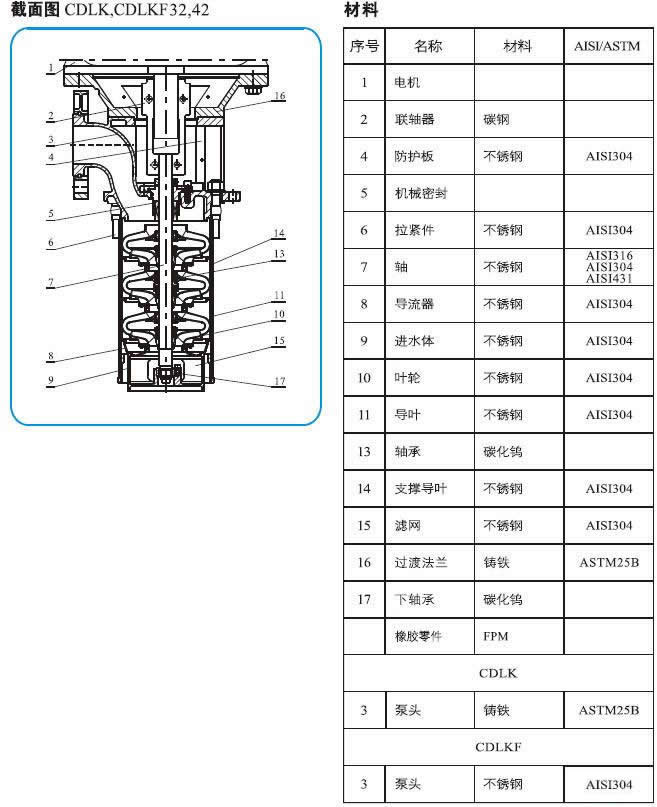 CDLK/CDLKF用于输送机床冷却液、润滑液、冷凝水输送、工业清洗设备和其它适合浸入式泵使用的场合,适合于不同温度、流量和压力范围,CDLK适用于无腐蚀性液体,CDLKF适于轻度腐蚀性液体。