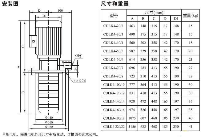 CDLK/CDLKF为安装标准电机的百自吸立式多级离心泵,电机轴通过泵头用联轴器直接与泵轴联接,泵可根据需要配置智能保护器,对泵干转、缺相、过载等进行有效保护。为满足水槽或容器的安装深度,可安装空腔体来改变泵本身的长度,不同的级数长度见尺寸和重量表和可供产品范围表。