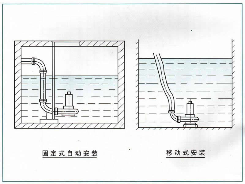 6.浮球开关可以根据所需液位变化,自动控制泵的起动与停止,不需专人看管,使用极为方便。 7.QW(WQ)系列可根据用户需要配备双导轨自动耦合安装系统,它给安装、维修带来更大方便,人可不必为此而进入污水坑。