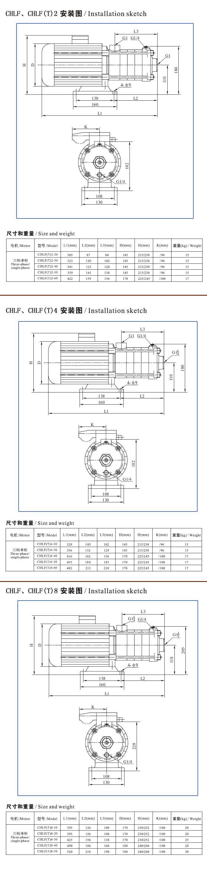 CHLF,CHLF(T)轻型段式多级离心泵(安装尺寸)