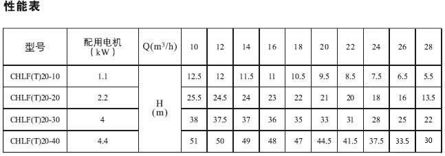 CHLF,CHLF(T)轻型段式多级离心泵(性能参数)