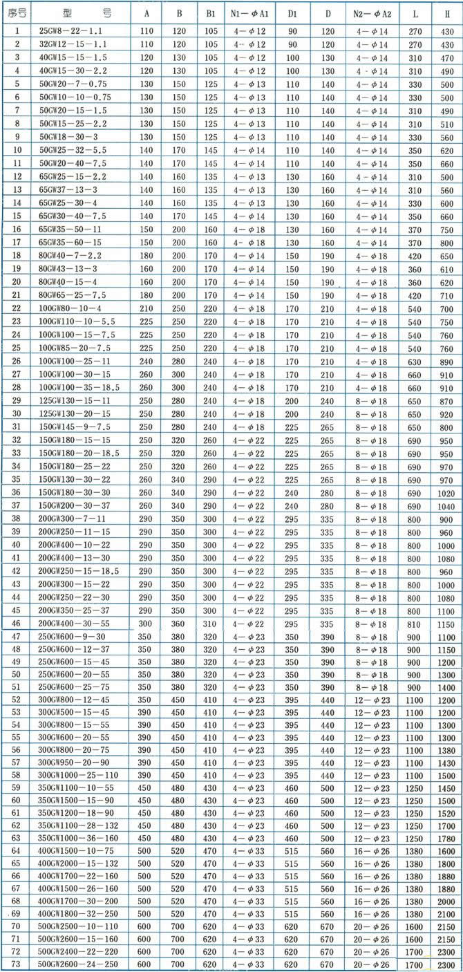 GW型管道式无堵塞排污泵安装尺寸图