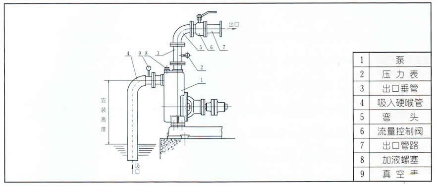 8,泵在工作过程中因故停泵.需再起动时,出口控制阀应稍开(不要全闭),这样既有利于自吸过程中气体从吐出口排出.又能保证泵在较轻的负荷下启动。