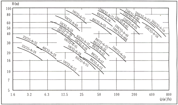 CYZ-A型防爆自吸式离心泵性能型谱图