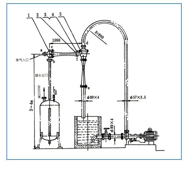 蒸汽喷射器是水力喷射串联蒸汽泵,它是利用水喷射和蒸汽喷射抽吸气体获得真空的新型设备。离心泵将静止水压力提高,压力水从蒸汽喷嘴中高速喷射出来,使喷嘴出口处的压力降低,形成真空,将外界气(液)体抽吸进来,共同进入混合管,通过扩散管而与水力喷射器配套使用,它比机械真空泵具有以下特点: